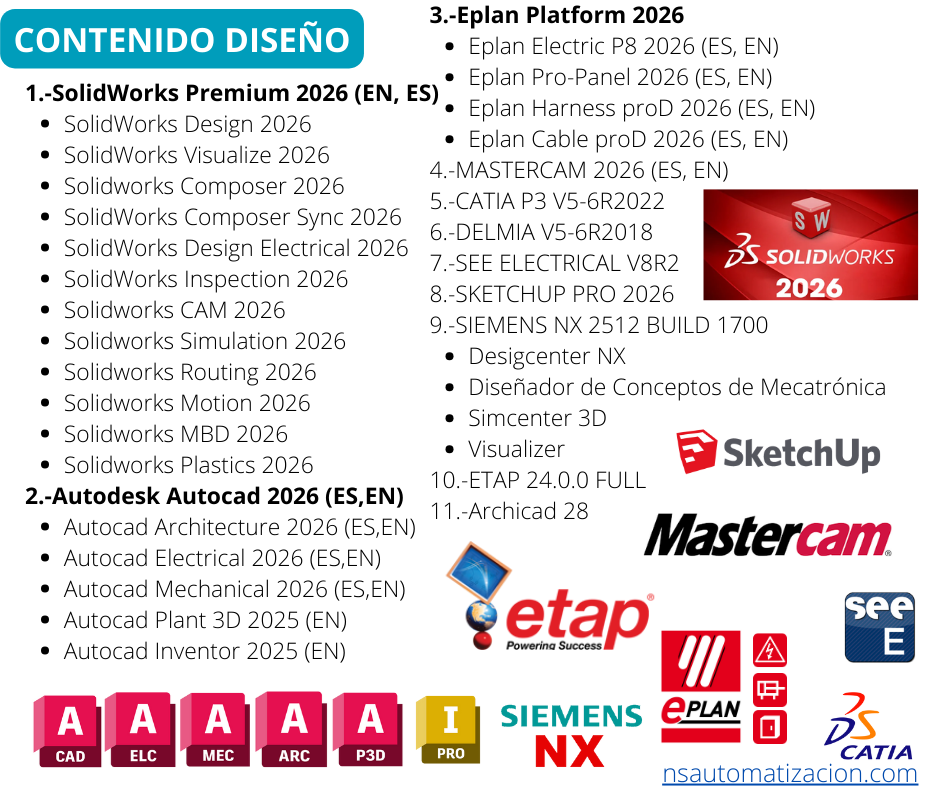 La Máquina virtual más completa del Mercado, enfocada exclusivamente en 3 de las más importantes ramas de la Ingeniería y la automatización industrial, abarcando gran parte del softwares más utilizado en la industria hoy en dia, versiones de software funcionales y actualizadas con las cuales podrás realizar proyectos y desarrollos a gran escala de una manera eficiente.